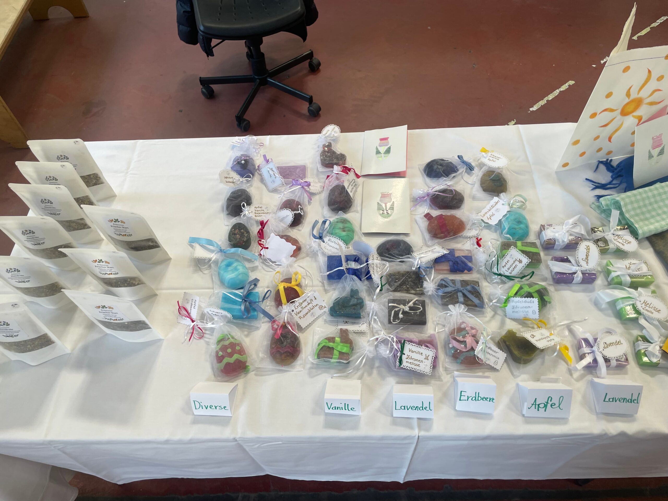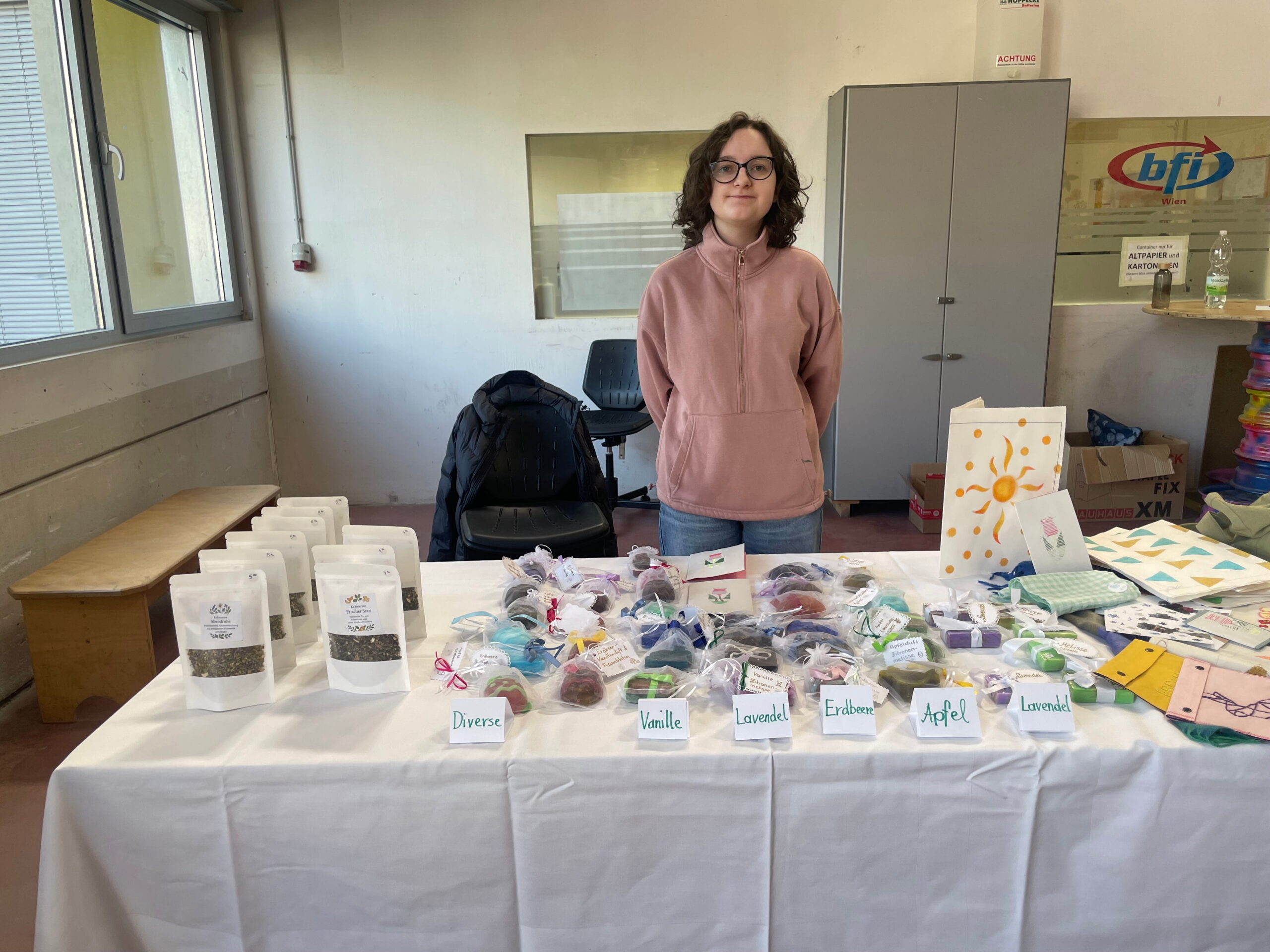 In den Werkstätten Einzelhandel Textil & Modedesign sowie Gesundheit, Fitness & Pflege entstanden in den vergangenen Wochen zahlreiche Produkte mit österlichem Bezug. Dazu zählten unter anderem handgefertigte Seifen in Ostereierform sowie selbstgenähte Textilien wie Röcke, Taschen und Polster. Auch die Werkstätten des BFI waren Teil der Ausstellung und trugen zur Vielfalt der präsentierten Arbeiten bei.